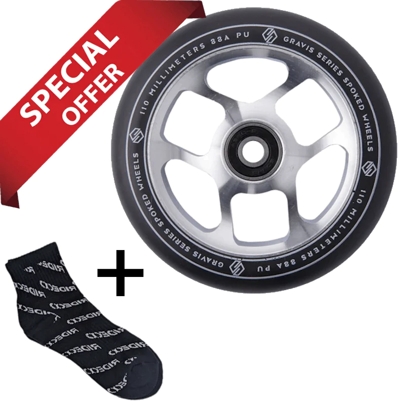 Striker Gravis Spoked Pro Scooter Wheel 110mm Raw + Rideoo Riding Socks 40-43